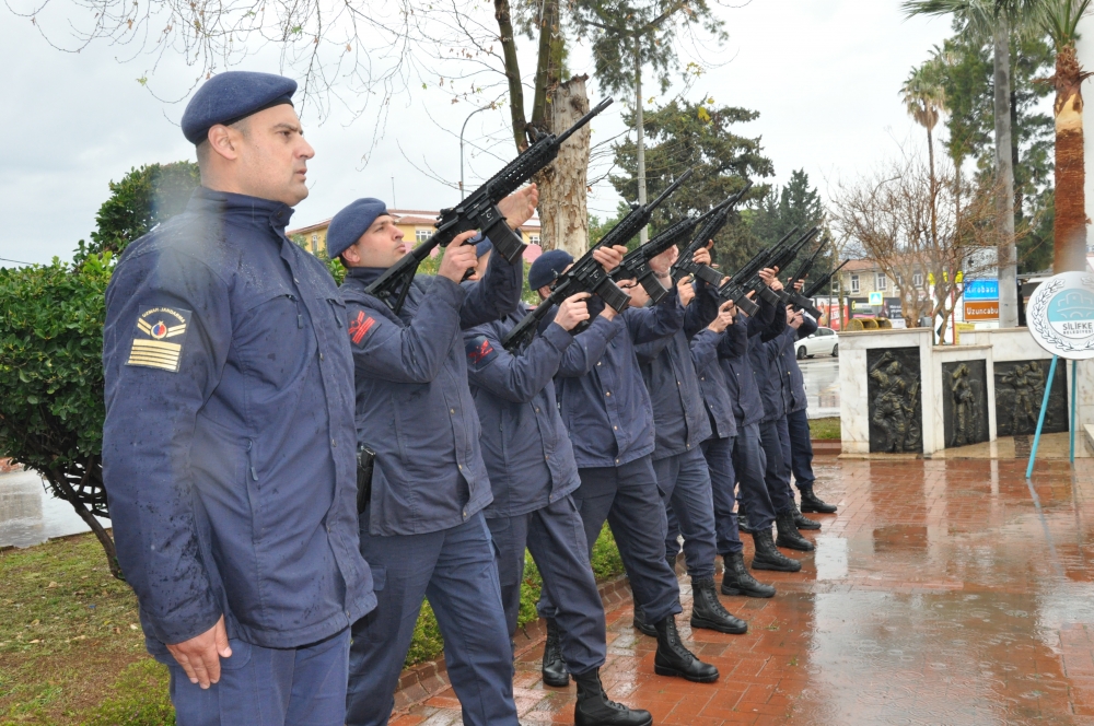 Saygı duruşunda bulunulup İstiklal Marşı'nın okunmasının ardından İl Jandarma Komutanlığı tören mangası tarafından saygı atışı yapıldı.