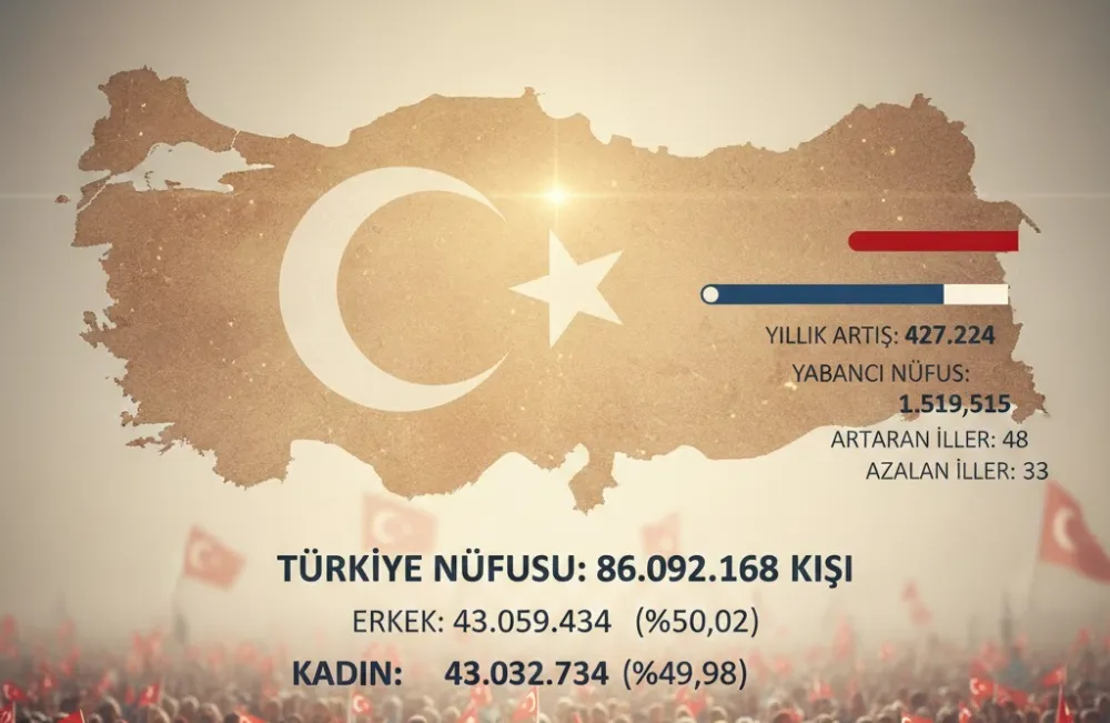 ANKARA – Türkiye İstatistik Kurumu (TÜİK), 2025 yılına ait Adrese Dayalı Nüfus Kayıt Sistemi (ADNKS) raporunu kamuoyuna duyurdu. Paylaşılan verilere göre ülke nüfusu, bir önceki yıla oranla 427 bin 224 kişilik bir yükseliş kaydederek 86 milyon 92 bin 168 kişiye ulaştı.