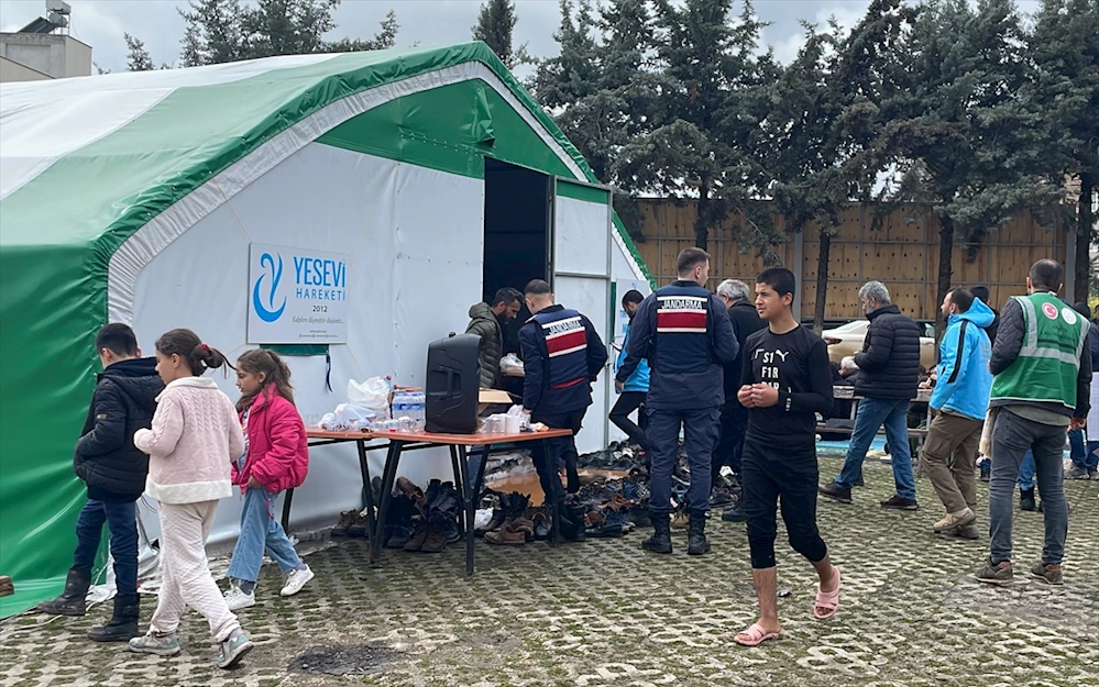 GÖRÜNTÜ DÖKÜMÜ : - Tırpan Ailesi Mescidi - Namaz kılan cemaat - Yemek dağıtımı - Yesevi Harekatı Derneği Genel Başkanı Mahmut Cömert ile röportaj Adıyaman'da depremde 9 ferdini kaybeden ailenin anısına mescit kuruldu ADIYAMAN (AA) - Kahramanmaraş merkezli 6 Şubat'taki depremlerden etkilenen Adıyaman'da, depremde 9 üyesinin yaşamını yitirdiği Tırpan ailesi adına kurulan mescidin açılışı yapıldı. Depremler sonucu ağır hasar gören Altınşehir Camisi'nin bahçesinde Yesevi Harekatı Derneği tarafından hazırlanan yaklaşık 500 kişi kapasiteli mescitte mevlit okutuldu, cuma namazı kılındı. Namaz sonrası ise vatandaşlara yemek ikramında bulunuldu. Yesevi Harekatı Derneği Genel Başkanı Mahmut Cömert, AA muhabirine, 2 hafta içerisinde depremin etkilediği illere 7 mescit kurduklarını söyledi. Depremin ilk anından itibaren sahada olduklarını belirten Cömert, 'Depremin ilk gününden bugüne milletimizin hizmetinde arama kurtarmadan insani yardım ve dini hizmetlere kadar her alanda 1400 kişilik ekibimizle çalışmalara devam ediyoruz. Bu enkazlar buradan kalkıp bu şehirler yeniden ihya olana kadar da buradayız.' dedi. Cömert, Adıyaman'da açtıkları mescide Kocaömer Mahallesi'ndeki binanın yıkılması sonucu 9 ferdini yitiren Tırpan ailesinin adını verdiklerini dile getirdi.