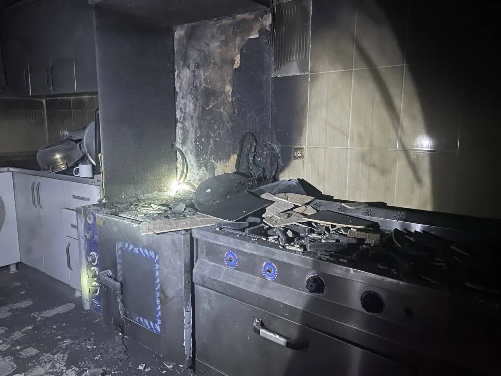 Sıçramanın etkisiyle mutfakta yangın çıktı.