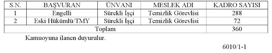 Aile ve Sosyal Hizmetler Bakanlığı’nın 360 sürekli işçi alımı, özellikle engelli ve eski hükümlü bireyler için büyük bir istihdam fırsatı sunuyor. Başvuru sürecini kaçırmamak için İŞKUR’un duyurularını takip etmekte fayda var.