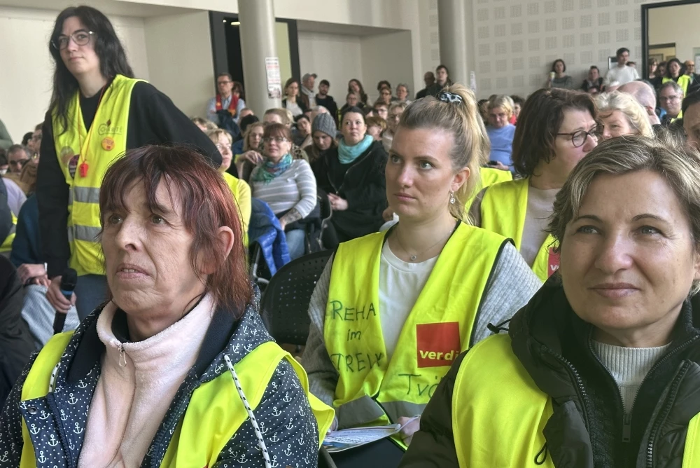 Almanya’nın başkenti Berlin’de Charite, Vivantes ve Yahudi hastanelerinde greve giden personel, CCG Salonu'nda toplandı. Burada ülkenin çeşitli kentlerinde greve çıkan hastanelerdeki kamu çalışanlarıyla çevrim içi bağlantı gerçekleştirildi ve karşılıklı destek mesajları verildi.