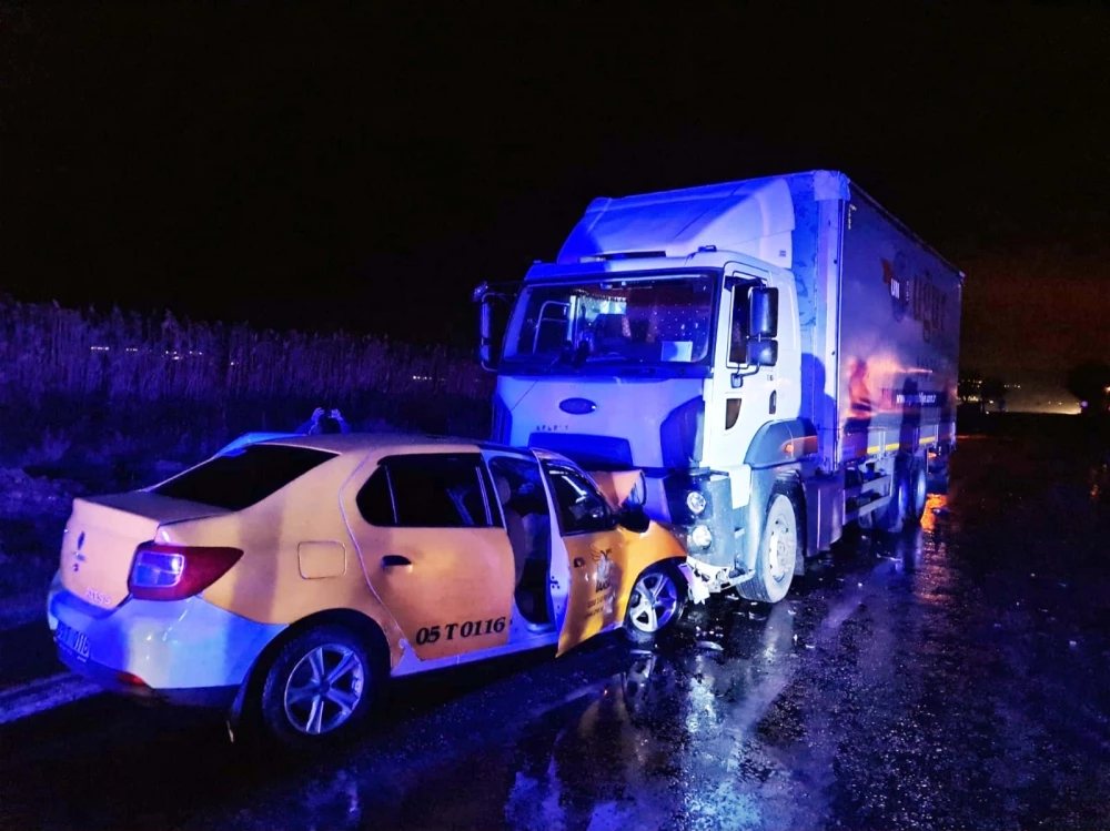 AMASYA (AA) - Amasya'da tırla çarpışan taksinin sürücüsü hayatını kaybetti, araçta bulunan aynı aileden 4 kişi yaralandı.