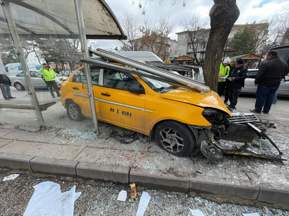 Raşit A. yönetimindeki 06 T 0204 plakalı taksi, ilçenin İncirli semtindeki Yunus Emre Caddesi'nde yolun karşısına geçen yayalara çarpmamak için direksiyonu kırınca yol kenarındaki otobüs durağına girdi.