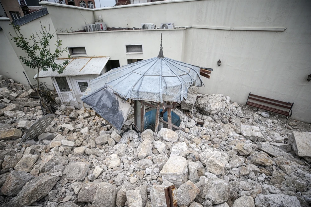 Avlusunun içinde mezarlar da bulunan caminin sütun, kitabe, mihrap ve minber süslemeleri de afetin etkisiyle enkaza dönüştü.