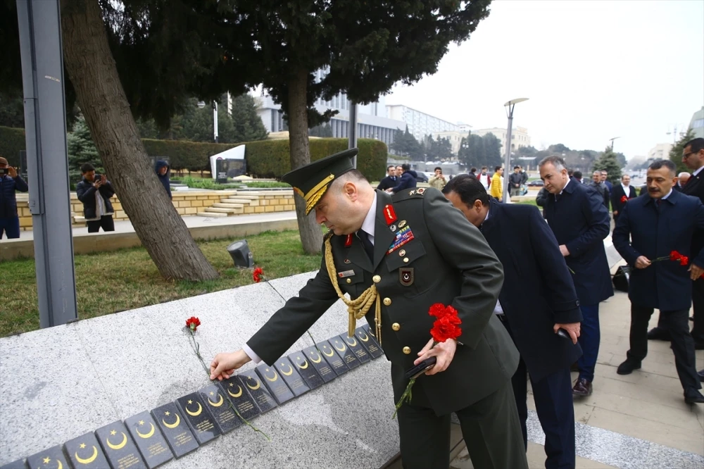 Geçici Maslahatgüzar Kıvılcım'ın Şehitlik Anıtı'na çelenk koyduğu törende, şehitler için saygı duruşunda bulunuldu, İstiklal Marşı ve Azerbaycan Milli Marşı okundu.