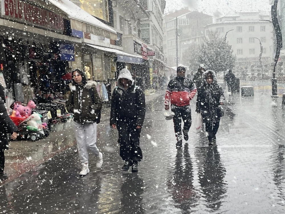 Yağış nedeniyle kent merkezinde kar kalınlığı yer yer 10 santimetreye ulaştı.