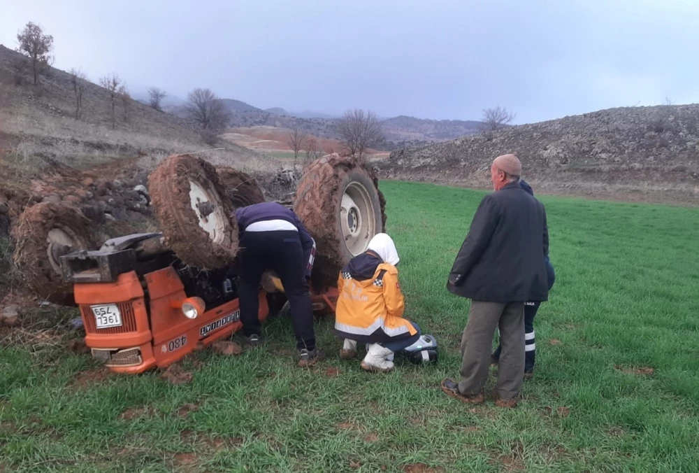 Ali Kara (58) yönetimindeki 19 EL 759 plakalı traktör, Gecek köyü Ağızsuyu Mahallesi Kızılyazı mevkisinde devrildi.