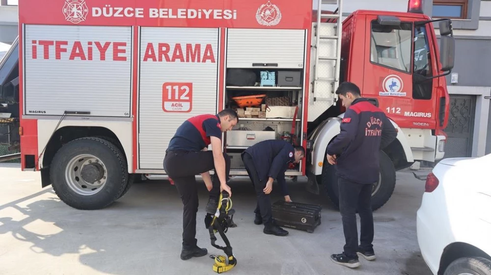 DÜZCE (AA) - Düzce'de merdiven ve havalandırma boşluğunda mahsur kalan iki kedi ile havuza düşen köpeğin yardımına itfaiye yetişti.