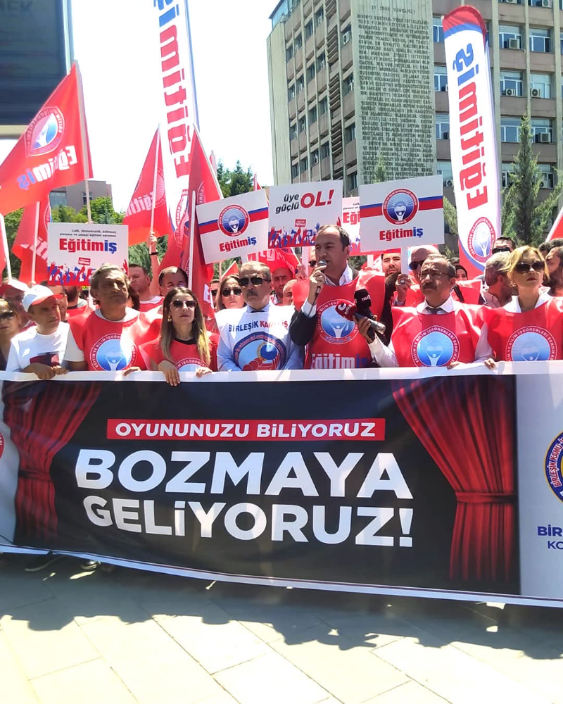 Ayrıca, Birleşik Kamu-İş Konfederasyonu Genel Başkanı Orhan Yıldırım ve MYK üyeleri ile bağlı sendikaların MYK üyeleri, şube ve il temsilcilik başkanları da alanda yer alarak eğitim emekçilerinin mücadelesine destek verdi.