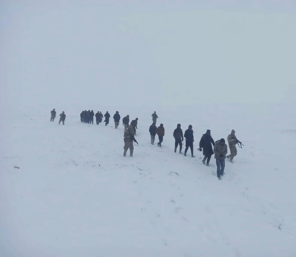 Karayazı İlçe Jandarma Komutanlığı ekipleri, Yeniköy Mahallesi Harabe Sırtı mevkisinde yaya olarak ilerlemeye çalışan bir grup düzensiz göçmeni fark etti.