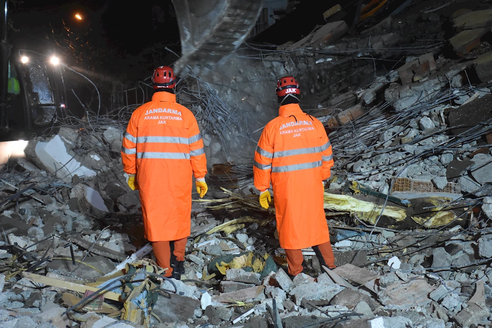 Depremlerde ağır hasarlı olan söz konusu binanın enkazında birinin olması ihtimaline karşın ekiplerce arama kurtarma çalışması başlatıldı.