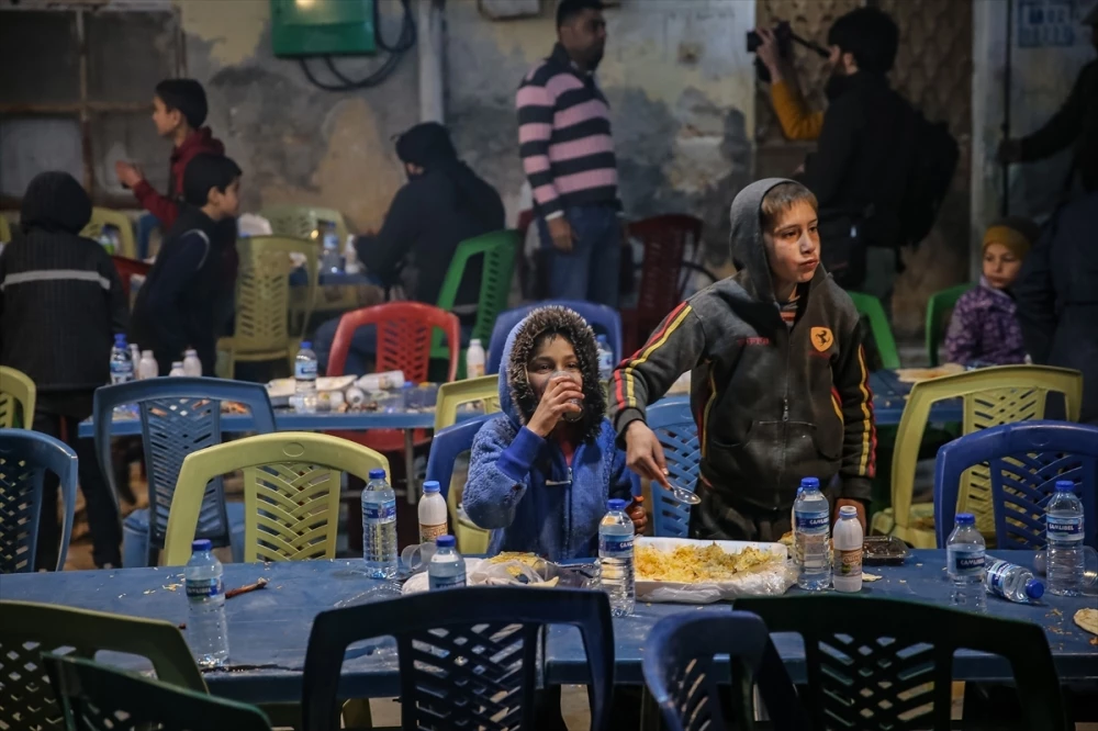 İDLİB (AA) - Suriye'de Halep ilinin batı kırsalında yaşayan yaklaşık bin sivil, Beşşar Esed rejimi ve destekçilerinin saldırıları ile Kahramanmaraş merkezli depremler sonrası enkaz haline gelen evlerin arasında iftar sofrasında buluştu.