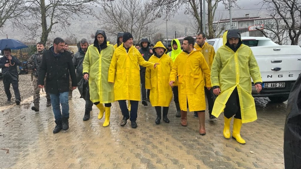 Bakan Soylu, şiddetli sağanağın etkili olduğu Adıyaman'ın Tut ilçesinde kayıp kişilerin bulunması için yürütülen çalışmaları inceleyerek ekiplerden bilgi aldı.
