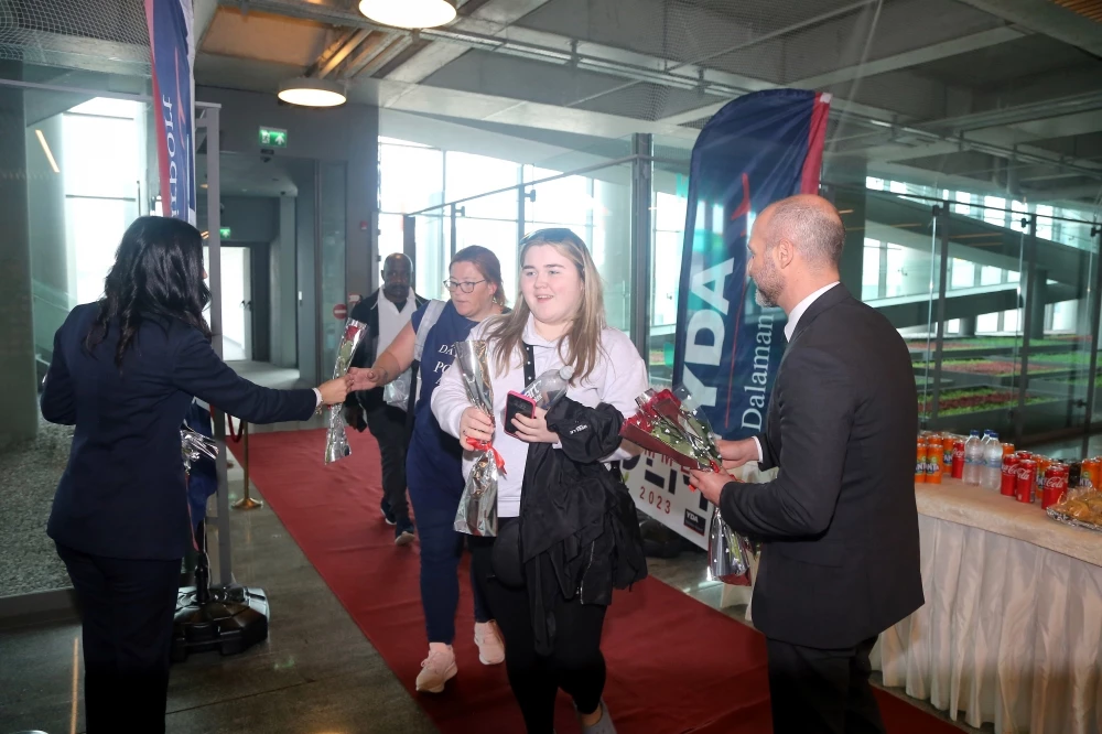 İngiltere'den YDA Dalaman Havalimanı'na gelen ve sezonun ilk turist kafilesi olan 188 kişilik kafile için karşılama töreni düzenlendi. Uçaktan inen yolcular havalimanı yetkililerince güllerle karşılandı.