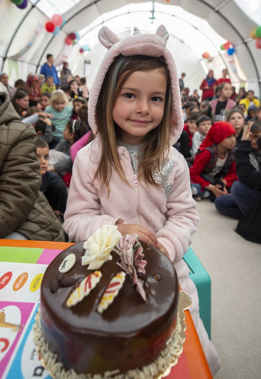 'Bugün 30 çocuğun doğum günü. 208 çadır var burada. Tek tek gezip çocukların doğum tarihlerini öğrendik ve listeledik. Herkesi mutlu edelim, bütün çocuklar pasta yesin istedik.' dedi.