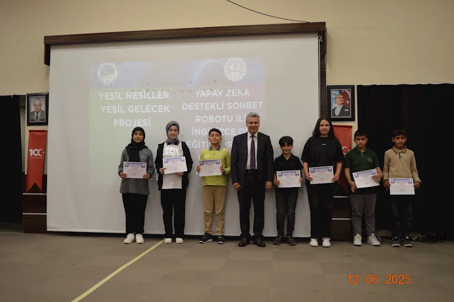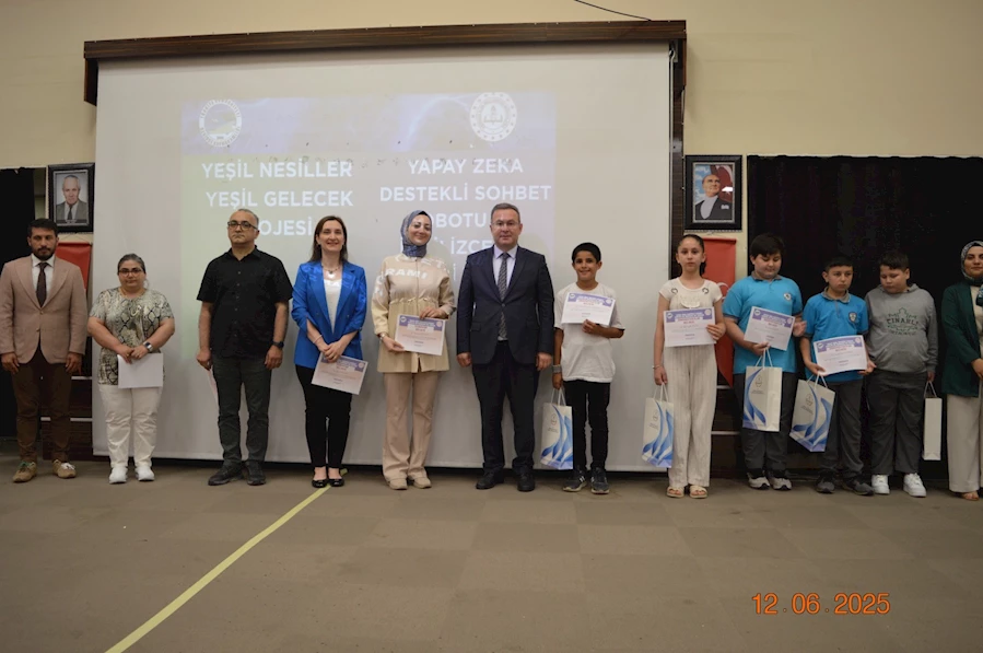 Derince Kaymakamlığı ve Derince İlçe Milli Eğitim Müdürlüğü koordinesinde, 2024-2025 eğitim-öğretim yılı boyunca büyük bir başarıyla yürütülen "Yeşil Nesiller, Yeşil Gelecek" ve "Yapay Zeka Destekli Sohbet Robotu ile İngilizce Dil Eğitimi" projeleri, Şükrü Aracı İlkokulu'nun ev sahipliğinde düzenlenen anlamlı bir yıl sonu programıyla taçlandırıldı. Yoğun bir katılımla gerçekleşen etkinliğe; Derince Kaymakamı Mustafa Demirelli, İlçe Milli Eğitim Müdürü Ayhan Erin, Yazı İşleri Müdürü Erhan Gümüş, İlçe Milli Eğitim Şube Müdürleri İbrahim Yıldırım ve Yakup Yaman'ın yanı sıra ilçe protokolü, siyasi parti temsilcileri, okul yöneticileri, öğretmenler, öğrenciler ve veliler de büyük ilgi gösterdi. Program, saygı duruşu ve İstiklal Marşı ile başladı, ardından yapılan protokol konuşmalarında projelerin öğrencilerin çevre duyarlılığını ve dijital becerilerini geliştirmedeki kritik rolü vurgulandı.