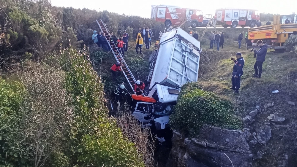 KOCAELİ (AA) - Kocaeli'nin Kandıra ilçesinde şarampole devrilen çöp kamyonundaki 3 kişi yaralandı.