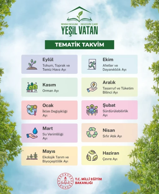 Milli Eğitim Bakanlığı, 2025-2026 eğitim öğretim yılı için “Türkiye Yüzyılı Maarif Modeli” doğrultusunda hazırladığı tematik takvimi duyurdu. Takvimde çevre bilinci, sürdürülebilirlik ve doğaya duyarlı nesiller yetiştirme hedefi öne çıkıyor.