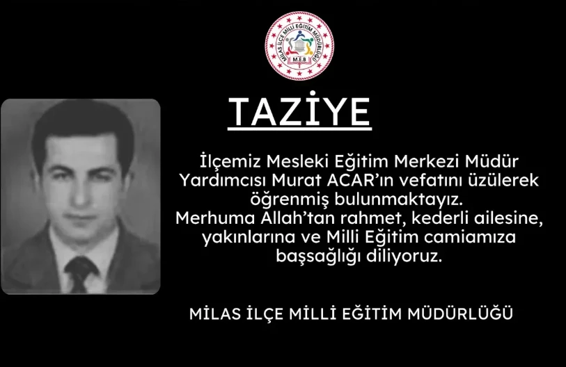 Muğla’nın Milas ilçesi, Kurban Bayramı’nın birinci gününde eğitim camiasını yasa boğan bir kayıpla sarsıldı. Milas Mesleki Eğitim Merkezi Müdür Yardımcısı Murat Acar (46), sabah saatlerinde evinde geçirdiği rahatsızlık sonucu hayatını kaybetti.