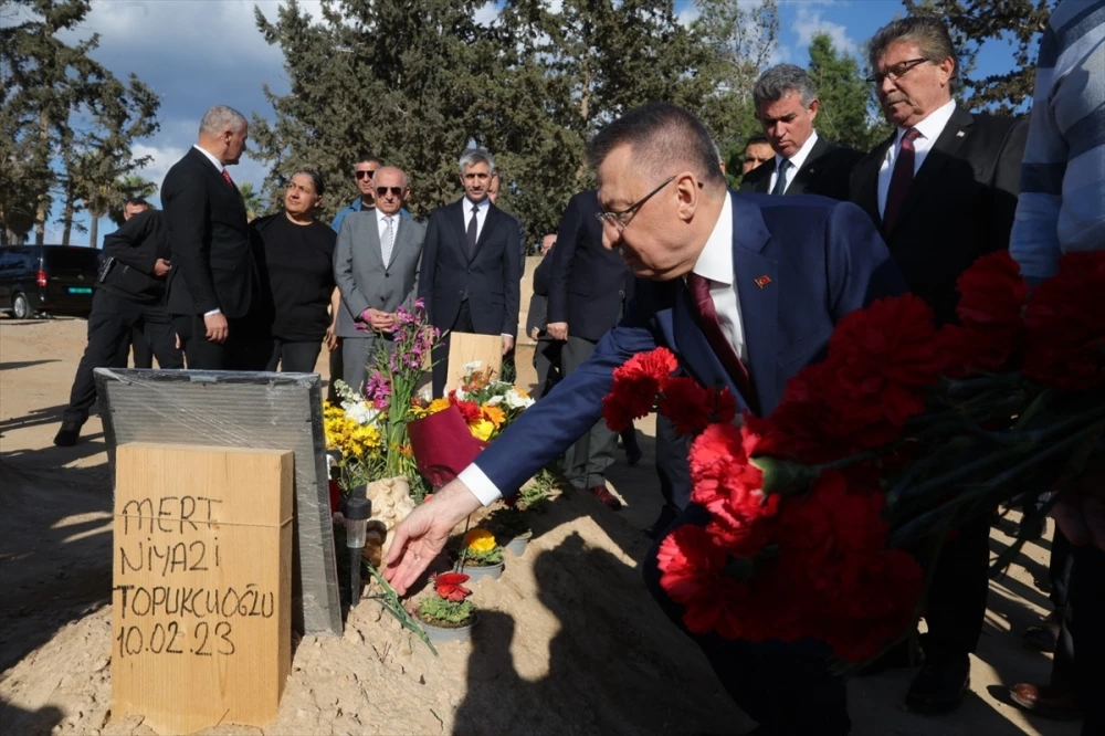 LEFKOŞA (AA) - Cumhurbaşkanı Yardımcısı Fuat Oktay, 6 Şubat'ta meydana gelen Kahramanmaraş merkezli depremlerde yıkılan Adıyaman'daki otelde hayatını kaybeden öğrencilerin, Kuzey Kıbrıs Türk Cumhuriyeti'ndeki (KKTC) kabirlerini ziyaret etti.