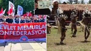 8. Dönem Toplu Sözleşme görüşmelerinde hükümetin sunduğu son teklif, memur sendikaları tarafından yetersiz bulunarak sert tepkiyle karşılandı. Devlet Memurları Konfederasyonu, Çalışma ve Sosyal Güvenlik Bakanlığı önünde düzenlediği eylemle “Bu teklifi kabul etmiyoruz” mesajını güçlü bir şekilde dile getirdi. Kamu çalışanlarının zam ve sosyal haklarını belirleyecek olan 8. Dönem Toplu Sözleşme görüşmelerinde hükümetin sunduğu son teklif, sendikaları ayağa kaldırdı. Devlet Memurları Konfederasyonu, Çalışma ve Sosyal Güvenlik Bakanlığı önünde düzenlediği protestoyla teklifi reddederken, Genel Başkan Osman Kaya'nın 'Papua Yeni Gine Kinası' üzerinden yaptığı kinayeli açıklama gündem oldu.