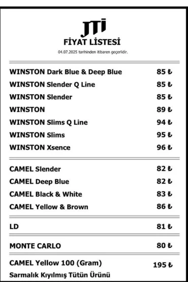 Yapılan 5 TL'lik zammın ardından, JTİ grubuna ait sigara ürünlerinin yeni fiyatları şu şekilde güncellendi: