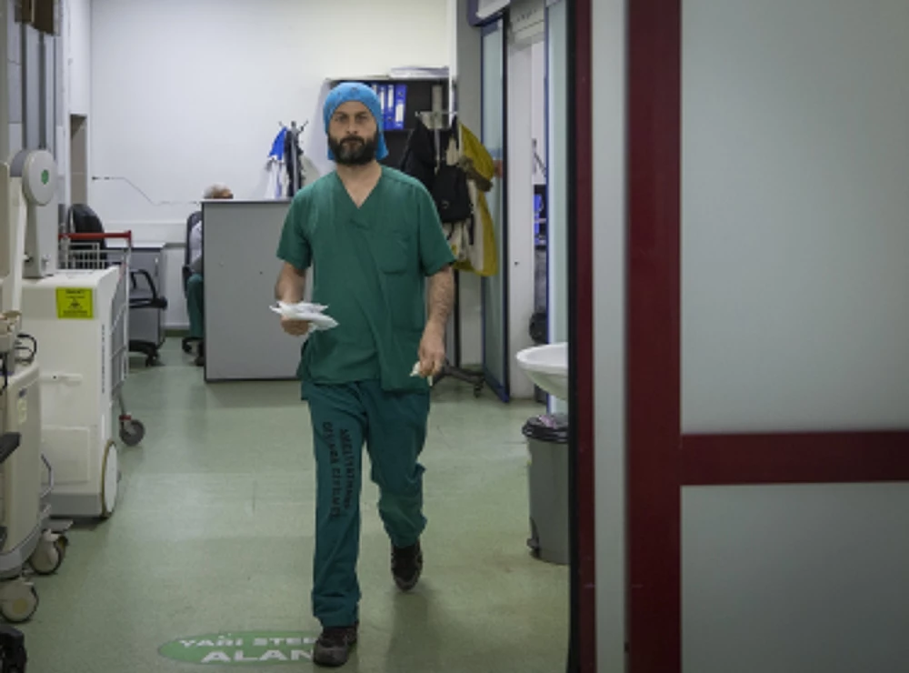Kahramanmaraş Necip Fazıl Şehir Hastanesi Yörük Selim Ek Hizmet Binası'nda görev alan sağlıkçılar arasında Gaziantep'te 26 yakınını kaybetmenin acısını yaşayan yoğun bakım hemşiresi ile emeklilik iznini erteleyerek göreve koşan acil servis doktoru da yer alıyor. Ek binada görevli sağlık personelinin yüzde 60'a yakını gönüllü sağlıkçılardan oluşuyor.