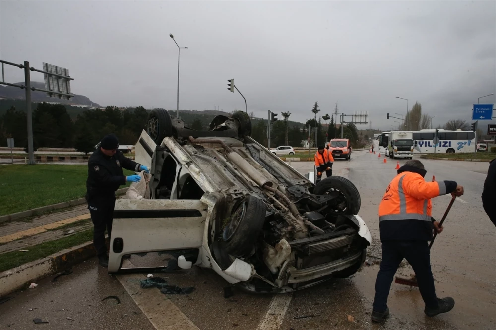 TOKAT (AA) - Turgay Alış idaresindeki 74 AAN 308 plakalı hafif ticari araç, Tokat-Turhal kara yolu Çevreyolu Kavşağı'nda önce refüje sonra Mahir Gelmez yönetimindeki İl Özel İdaresine ait 60 HA0 15 plakalı kamyona çarparak devrildi.