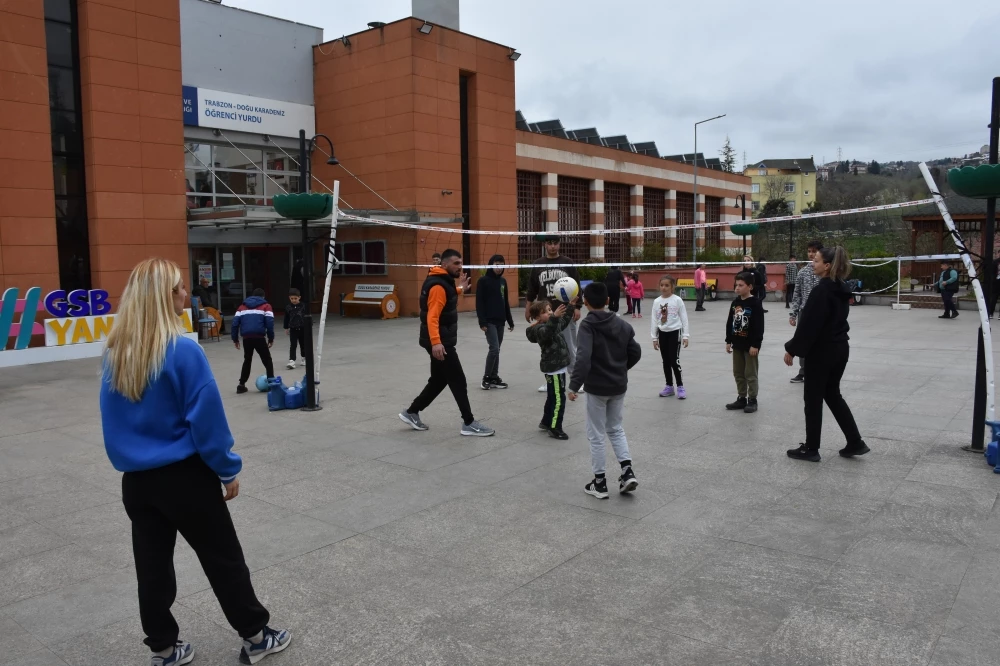 TRABZON (AA) - DUYGU AVUNDUK - Kahramanmaraş merkezli, 6 Şubat'ta meydana gelen depremlerden etkilenerek Trabzon'da yurtlara yerleştirilen afetzedelere, badminton ve voleybol eğitimi veriliyor.