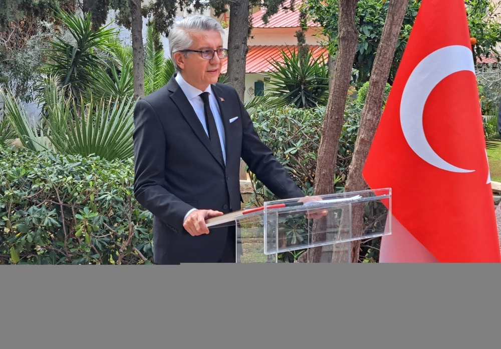 Türkiye'nin Atina Büyükelçisi Çağatay Erciyes, Atina-Pire Başkonsolosu Mustafa Somuncu, askeri ataşeler ve diplomatik misyon üyelerinin katıldığı tören, şehitlik anıtı önündeki saygı duruşu ile başladı.